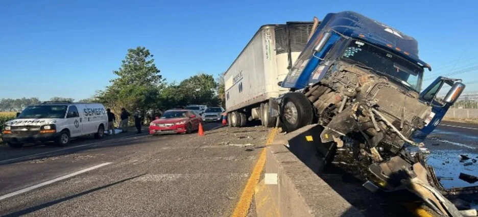 El tráiler involucrado quedó encaramado sobre los muros de concreto que dividen los carriles de la carretera, lo que obligó a la Guardia Nacional División Caminos a tomar control de la escena para las diligencias correspondientes. Personal pericial también realizó el levantamiento del cuerpo y ordenó su traslado al Servicio Médico Forense para los procedimientos de ley.