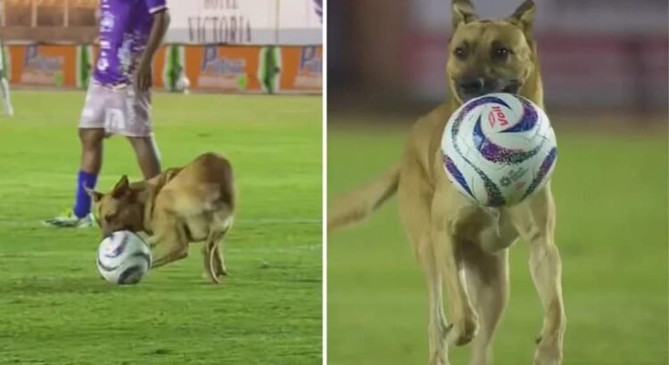 En el video se observa cómo el perro corre tras el balón, e incluso, uno de los jugadores lo patea para que el can pueda ir tras éste. Luego de unos segundos, lo toma con el hocico y corre.