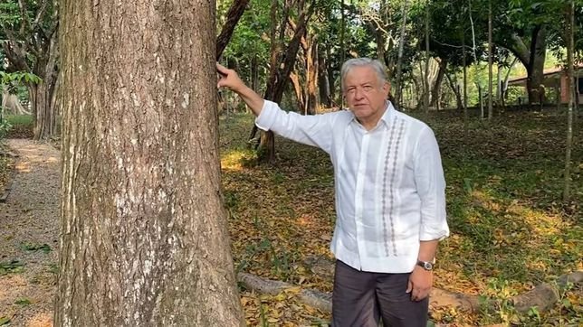 En el vídeo de le ve junto a un cedro, el cual asegura tiene su edad de 69 años, “escuchen las guacamayas”, dice en el video el presidente.