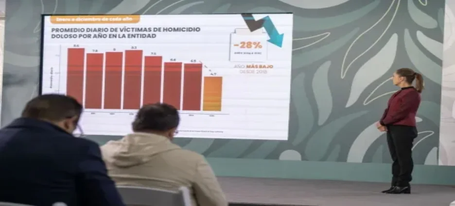 Las autoridades federales y estatales informaron este viernes que en Baja California se logró una reducción del 42 % en los homicidios dolosos entre septiembre de 2024 y diciembre de 2025, como resultado de la implementación de la Estrategia Nacional de Seguridad y el trabajo coordinado entre los tres órdenes de gobierno.