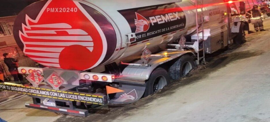 Cae pipa con 20 mil litros de diésel en socavón y causa alarma