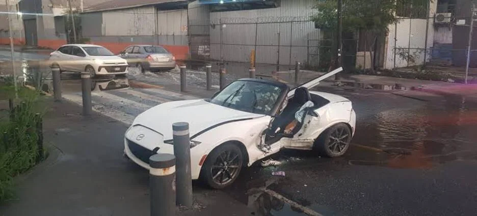 Este martes por la mañana, Carlos Israel O., de 37 años, chocó el coche MX5 contra un poste de contención en el cruce de Guerrero y Heroico Colegio Militar, en la Colonia Del Prado de Monterrey.