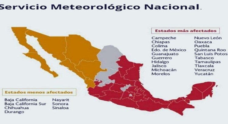 Así como las entidades federativas de Chiapas, Colima, Morelos, Oaxaca, Quintana Roo, Puebla, San Luis Potosí, Nuevo León, Tabasco, Yucatán y Veracruz, donde la temperatura subirá significativamente durante más o menos cinco semanas, es decir, hasta septiembre.