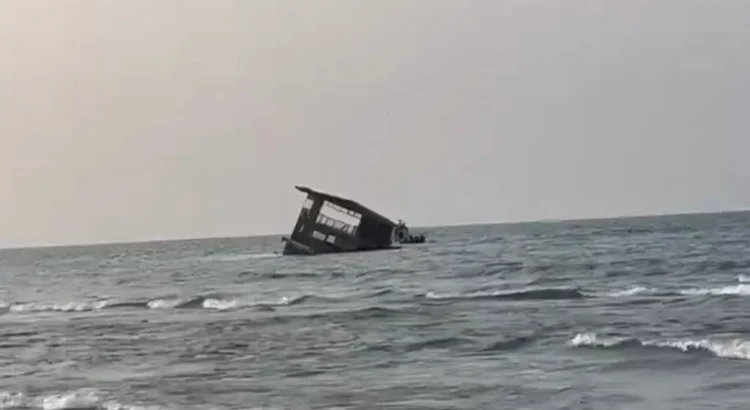 Las imágenes son virales. Recorrió el litoral luego de desprenderse de sus amarres en Tuxpan, a consecuencia del mal clima e inundaciones provocados por la perturbación tropical 90-E, al norte de la entidad.