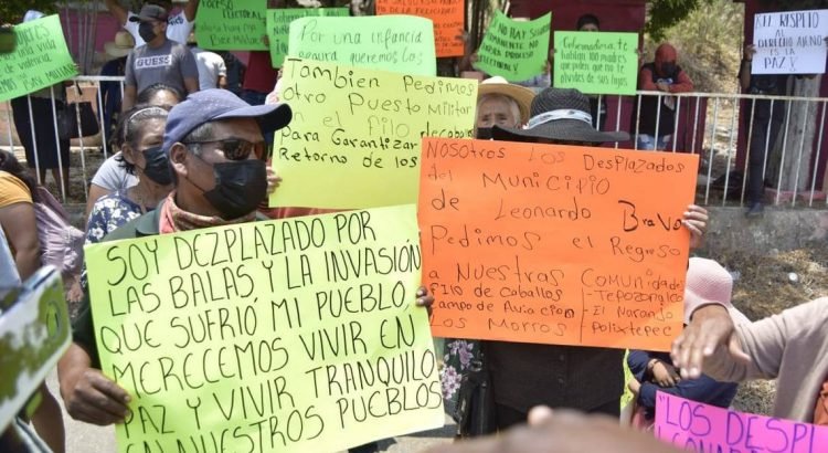 Los desplazados del municipio de Leonardo Bravo, se manifestaron en la entrada del pueblo para exigir a las autoridades de los tres niveles de gobierno garantizar la seguridad en todas las comunidades con el objetivo que puedan regresar a sus pueblos, de no existir la respuesta del gobierno, han amenazado con impedir la instalación de las casillas para las elecciones de este domingo 2 de junio.