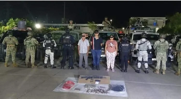 Los detenidos identificados con los nombres de Ernesto N., alias el “Maco”, de 74 años de edad; Wilbert N., alias el “Gordo”, de 18; y María Guadalupe N., de 20 años de edad, les fueron decomisados un arma larga RT .223, bolsitas transparentes con presunta marihuana, poncha llantas, un cargador de arma larga color gris, 20 cartuchos útiles calibre 7.56 mm, así como una cartera color café con identificaciones, una maleta tipo pixelado y dinero en efectivo.