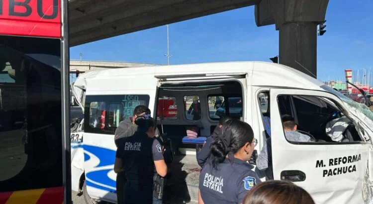 Dos muertos y cinco heridos de gravedad es el saldo preliminar de un choque entre una camioneta urvan de transporte público concesionado con un tractocamión, ocurrido la mañana de este sábado en los límites de los municipios de Pachuca con Mineral de la Reforma.