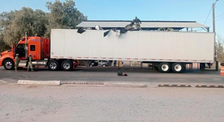 De acuerdo con el comunicado de la Secretaría de la Defensa Nacional (Defensa), la detección ocurrió al inspeccionar un tractocamión de la empresa Trasborde del Bajío, el cual circulaba vacío procedente de Puerto Peñasco, Sonora, con destino al Valle de Mexicali, Baja California.