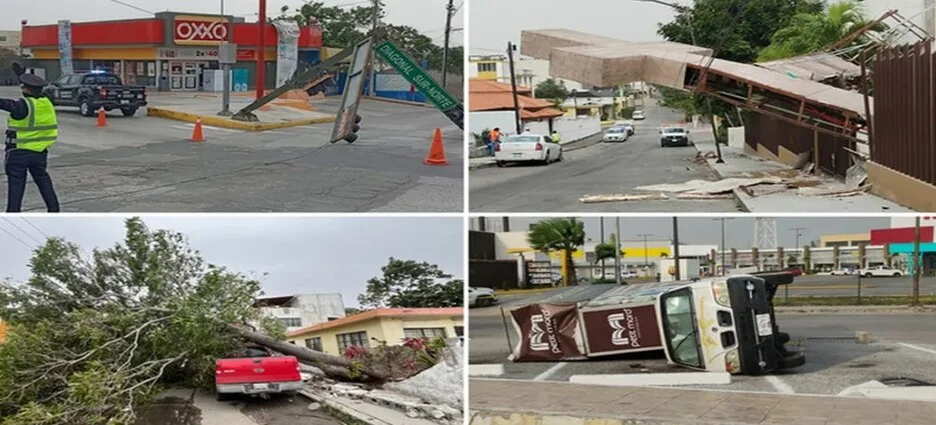 El fenómeno se intensificó en la madrugada y las primeras horas de la mañana en la zona metropolitana de Tampico, Ciudad Madero y Altamira, donde la autoridad reportó afectaciones en infraestructura urbana lo que obligó a la suspensión de servicios básicos como Internet.