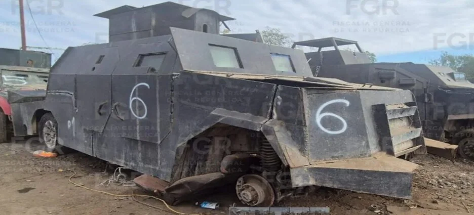 La Fiscalía General de la República destruyó 23 vehículos con blindaje artesanal, conocidos como “monstruos”, asegurados en operativos contra la delincuencia organizada realizados entre noviembre de 2025 y enero de 2026 en esta región fronteriza del noreste de México como parte del Programa Destino de Bienes y Objetos del Delito.
