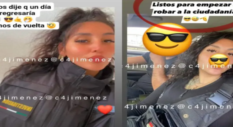Resultado del análisis de las fotografías publicadas, se advierte que la femenina porta una chamarra color guinda que no corresponde a la vestimenta oficial de la Fiscalía, mientras que en otra imagen se aprecia con una chamarra negra, prenda que en apariencia sí forma parte del uniforme institucional, no obstante, se infiere que no es de su propiedad, por lo que se investigará la forma en que la obtuvo.