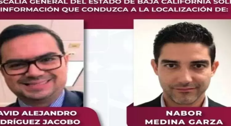 La Fiscalía General del Estado de Baja California ofrece una recompensa de hasta 1 millón de pesos por información que de con la ubicación de David Alejandro Rodríguez Jacobo y Nabor Medina Garza, funcionarios del Banco Afirme.