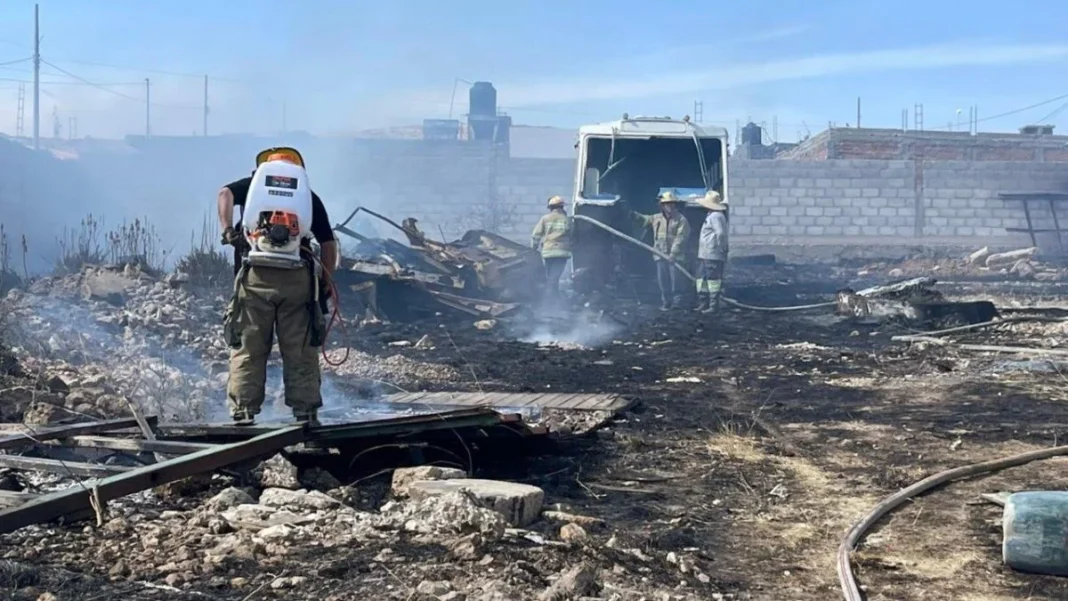Un incendio de gran magnitud registrado la tarde de este martes en un corralón de Fresnillo dejó como saldo la pérdida total de dos camiones urbanos y diversos daños materiales, sin que se reportaran personas lesionadas.
