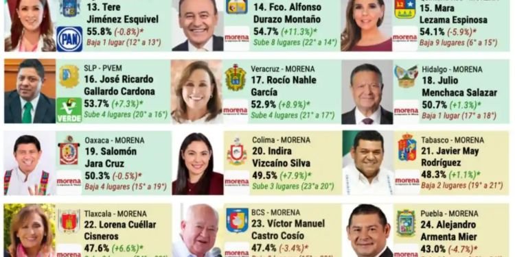 Este resultado lo coloca entre los gobernadores con menor aprobación, según los resultados de la encuesta levantada del 16 al 20 de septiembre de 2025, con una muestra de 2 mil 518 personas, un nivel de confianza de 95% y un margen de error de ±3.2%.