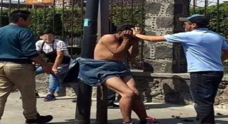 El presunto ladrón fue desnudado, golpeado, paseado y exhibido al portar una cartulina por las diferentes calles hasta llegar a la presidencia municipal.