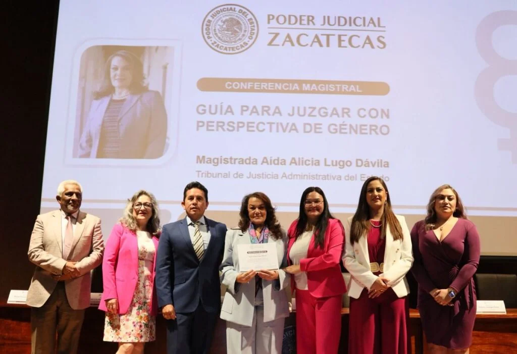 La funcionaria señaló que esta actividad también constituye un reconocimiento a quienes han contribuido a conquistar los derechos que hoy disfrutan las mujeres, y resaltó el papel de juezas y jueces en Zacatecas, cuyas resoluciones —dijo— deben honrar el legado de quienes lucharon para que la perspectiva de género se convierta en una práctica permanente dentro del sistema judicial.