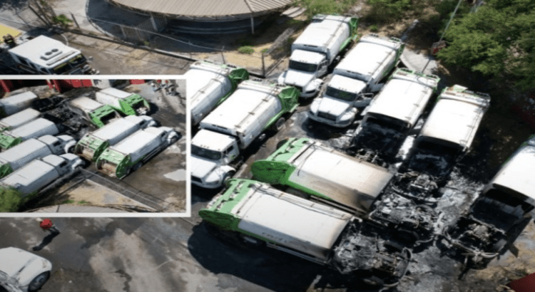 Incendio consume camiones recolectores de basura en Monterrey