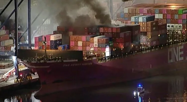La tripulación del ONE Henry Hudson (98.849 TPM) reportó un incendio eléctrico bajo cubierta aproximadamente a las 18:38 hora local, según el Departamento de Bomberos de Los Ángeles. El buque, construido en 2009, llegó de Tokio, Japón, el 19 de noviembre y tiene una capacidad de 8.212 TEU. Está registrado en Panamá.