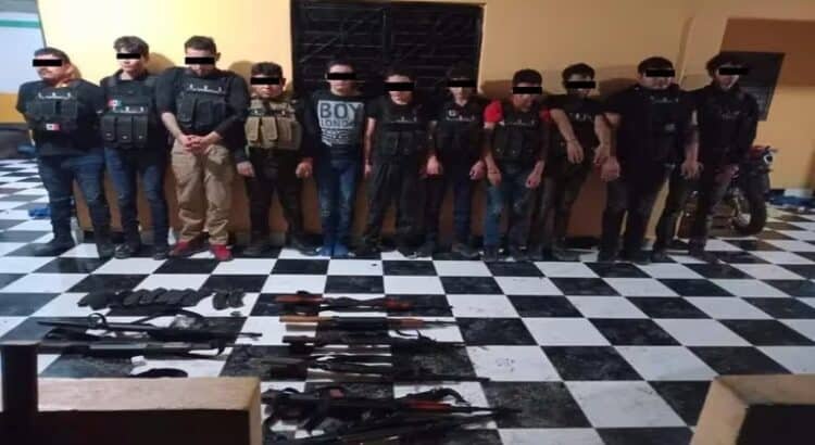 Se trata de Alexis “P”, Abenai “V”, Cruz “M”, Eduardo “J”, Daniel “L”, Emanuel “P”, Fidel “L”, Eduardo “V”, Anselmo “G”, Anselmo “G”, Jaime “G” y Angel “L”, quienes fueron asegurados junto con una docena de armas largas tipo fusil, así como cargadores, cartuchos y 12 chalecos.
