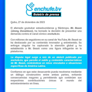 Enchufe TV destacó que la disputa legal surgió a raíz de un sketch en el que parodiaron el estilo y contenido característico de Mr. Beast, “centrados en retos vinculados a situaciones específicas de América Latina”.