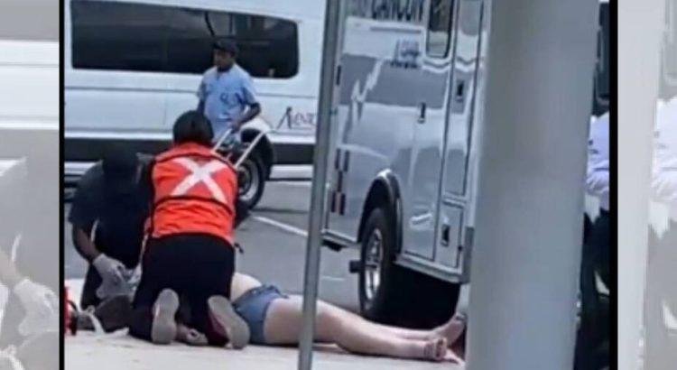 A las afueras de la Terminal 3 del Aeropuerto Internacional de Cancún, una turista que en principio se cree era de nacionalidad extranjera, falleció. Al parecer la mujer cae al piso de un momento a otro, por lo que los paramédicos le atendieron, pero ya no contaba con signos vitales.
