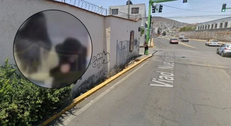 En la Avenida Los Ilustres, en Pachuca, Hidalgo, fue captado en video cómo una mujer, en aparente estado de ebriedad, golpea a su pareja con patadas y puñetazos.