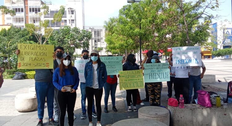 Los manifestantes señalaron que la Secretaría de Educación argumenta insuficiencia presupuestaria para justificar la falta de plazas, mientras que en el estado hay escuelas cerradas por la carencia de docentes.