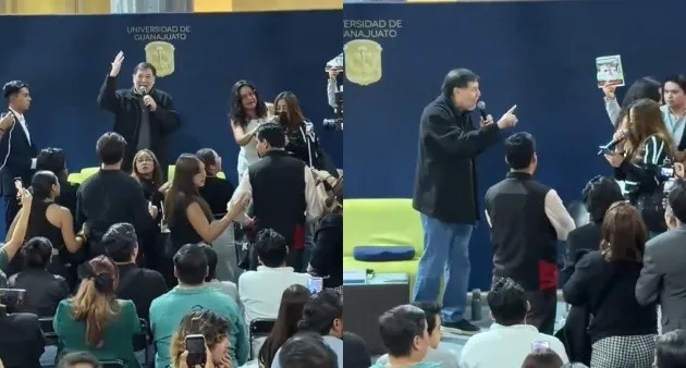 Durante su participación, algunos jóvenes intentaron subir al escenario para plantear sus inconformidades, pero el senador mantuvo una postura desafiante y dijo que continuaría su intervención sin alterarse. “Por mí se pueden quedar ahí … me da lo mismo”, respondió, insistiendo en que terminaría su mensaje e incluso regaló un libro de la presidenta Claudia Sheinbaum como parte de su intervención.