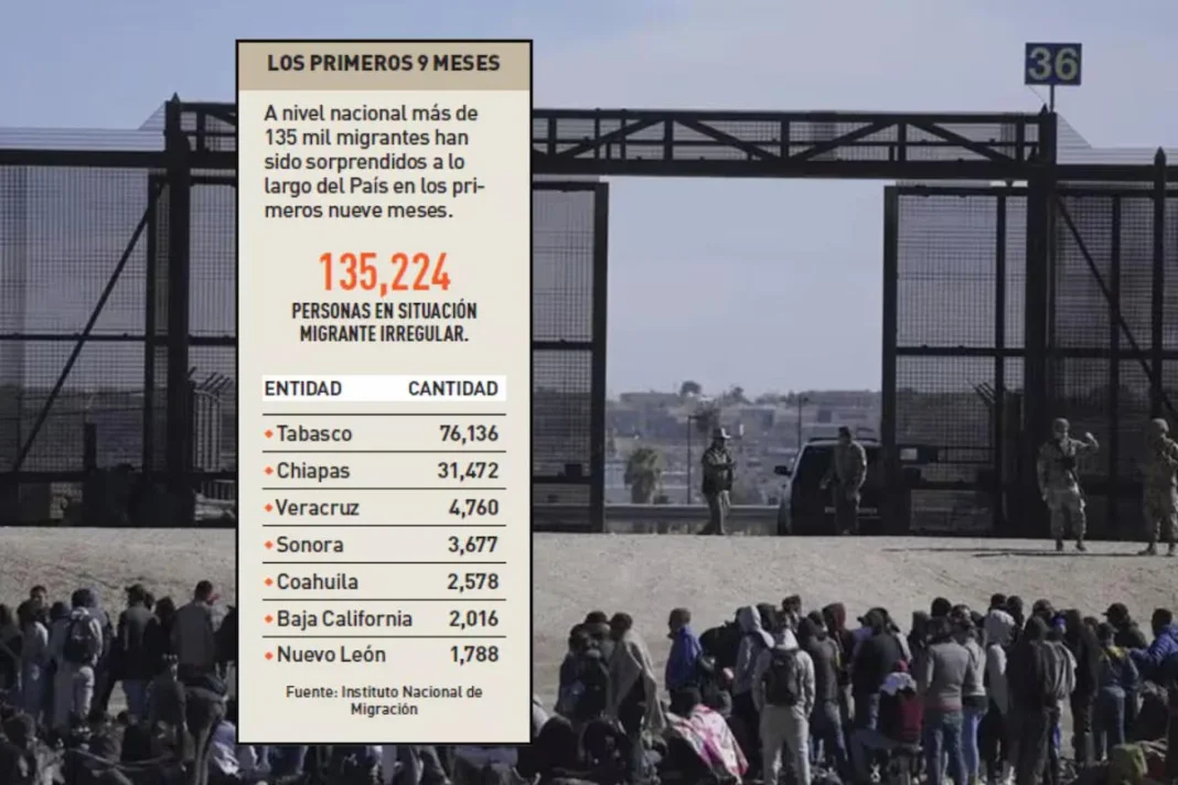 El primer sitio de enero a septiembre lo tiene Tabasco, con 76 mil 136 arrestados; le siguen Chiapas, 31 mil 432, y Veracruz, con 4 mil 760.