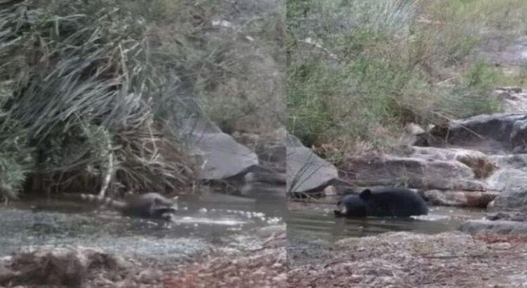 En las frescas aguas de la sierra del pueblo mágico de Arteaga, Coahuila, un oso y un mapache fueron captados quitándose el calor en un video compartido por la organización para la conservación del medio ambiente UrsusMX.