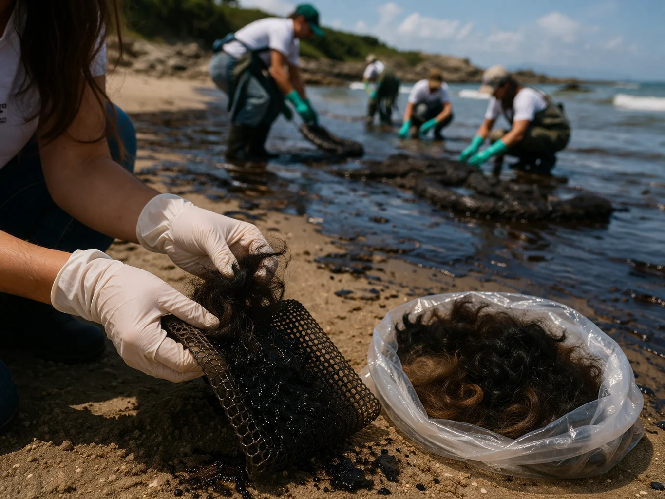 De acuerdo con los organizadores, el cabello posee propiedades que facilitan la adherencia del crudo y repelen el agua, lo que permite su uso en la elaboración de mallas y filtros absorbentes. Señalan que un kilogramo de cabello puede retener entre tres y ocho litros de petróleo.