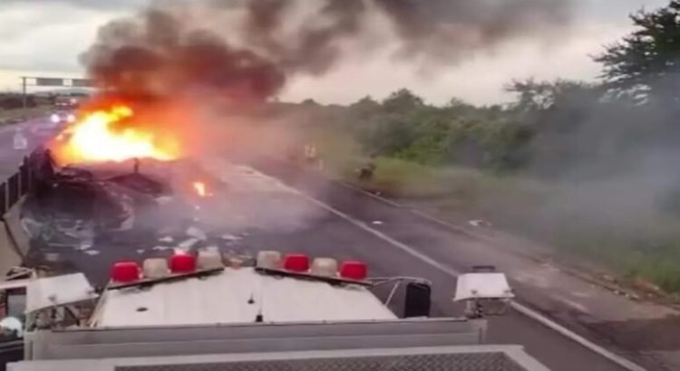 Se informó que debido al siniestro se realizó el cierre total de la vialidad en ambos carriles, mientras se sofocaron las llamas.