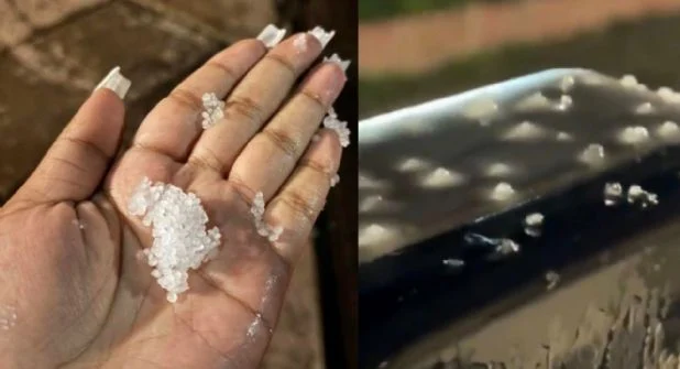 Usuarios en redes sociales difundieron imágenes y videos donde se observa la mezcla de lluvia y pequeños fragmentos de hielo cayendo sobre calles y vehículos.