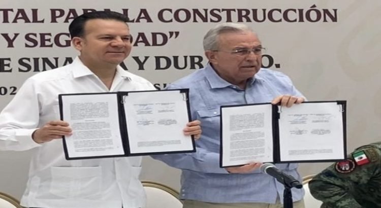 El gobernador del estado, Rubén Rocha Moya, y Esteban Villegas Villarreal, mandatario estatal de Durango, firmaron un convenio de coordinación y colaboración, en materia de seguridad.