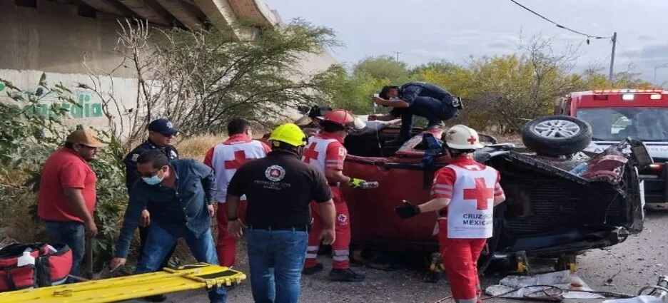 Una camioneta Dodge Ram 700 con placas EX-4324-C tripulado por Jesse Martínez, proveniente de Michigan, Estados Unidos, el cual fue trasladado al Sanatorio Español Zona Norte en estado delicado, tras quedar prensado al interior del vehículo.