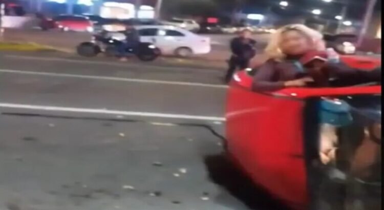 El percance ocurrió a la altura de la colonia Calesa en dirección al sur de la ciudad, donde la mujer después de volcar su auto Chevrolet, color rojo, y salir de la carrocería no aceptó su responsabilidad y enfrentó a policías que acudieron a tomar conocimiento.