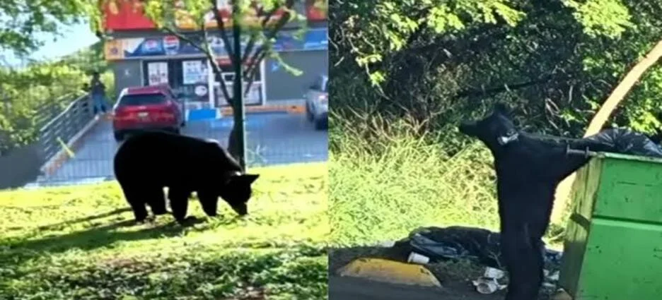 En las imágenes y fotografías, se aprecia al oso acercándose a un bote de basura y consumiendo algo de comida que se encontró dentro de él.