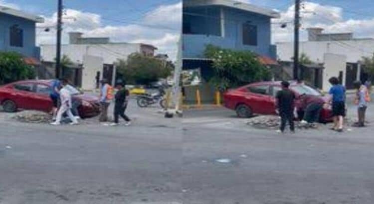 Un vehículo cayó en una zanja ocasionada por trabajos inconclusos de Agua y Drenaje, misma que está en abandono desde hace dos meses en Monterrey.